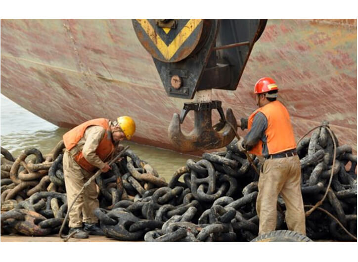 錨是一種鋼鐵制造的停船器具,沒有錨,船舶就無法停穩(wěn)。而對(duì)于鏈接船舶與錨的錨鏈,則更為重要,沒有錨鏈,錨就與船舶無法連接,錨的作用也就失去了意義。有時(shí),船舶與船舶之間的錨鏈會(huì)因?yàn)楦鞣N原因相互纏繞在一起。